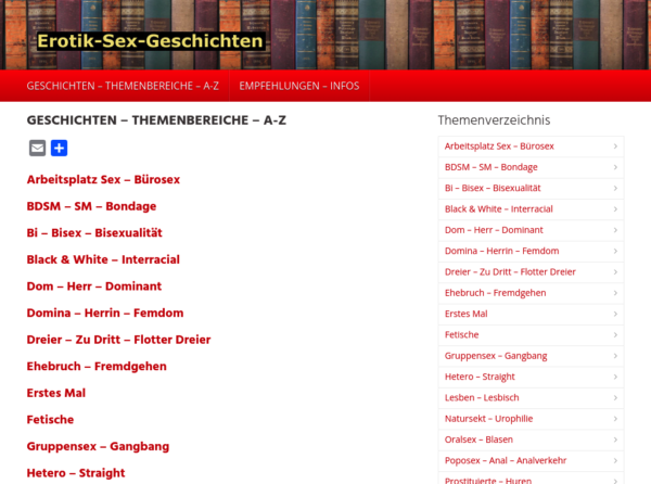 Man kann sich auf dieser Seite von leidenschaftlichen Liebesakten, heißen Affären oder wilden Gruppensex-Szenen inspirieren lassen. Auch außergewöhnliche Fetische und Vorlieben werden hier bedient, sodass wirklich jeder auf seine Kosten kommt. Die Vielfalt an Geschichten ist beeindruckend und sorgt dafür, dass man sich nie langweilt.