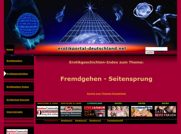 Auf der Website www.erotikportal-deutschland.net findet man eine Vielzahl von Erotik- und Sexgeschichten, die die Fantasie anregen und erotische Abenteuer zum Leben erwecken. Dabei kommen auch Themen wie Fremdgehen und Seitensprünge nicht zu kurz.