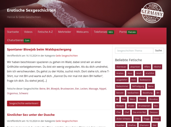 Die Seite bietet eine breite Auswahl an verschiedenen Kategorien von Geschichten, von romantischen und sinnlichen Erzählungen bis hin zu hardcore und BDSM-Geschichten. Egal, welche Vorlieben man hat, auf dieser Seite wird man sicherlich fündig. Die Geschichten sind von verschiedenen Autoren geschrieben und bieten somit eine Vielfalt an Stilen und Themen.