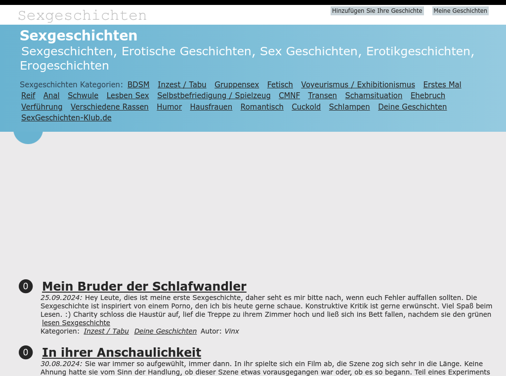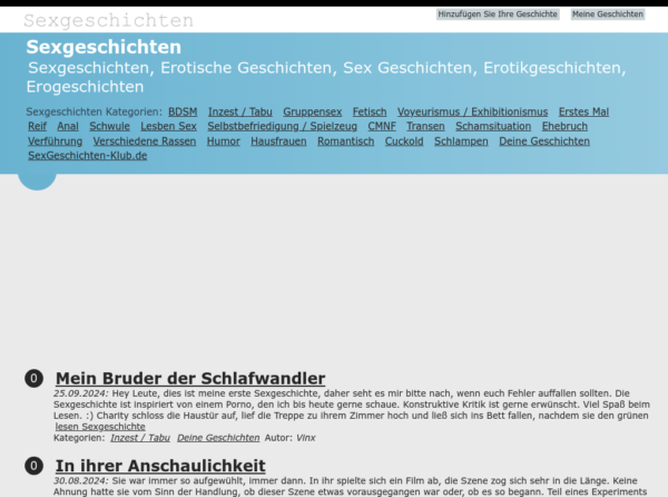 Die Vielfalt der Sexgeschichten auf sgeschichten.de ist beeindruckend. Von unschuldigen Begegnungen zwischen Fremden bis hin zu heißen Affären unter Kollegen, wird hier keine erotische Fantasie ausgelassen. Auch BDSM-Geschichten und Gruppensex-Szenarien sind Teil des Repertoires und bieten Abwechslung für alle, die auf der Suche nach neuen Erfahrungen sind.