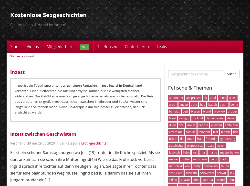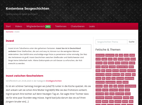Fetisch und Inzest sind zwei Themen, die viele Menschen faszinieren und gleichzeitig schockieren können. Wer auf der Suche nach erotischen Geschichten zu diesen Themen ist, wird auf der Website www.erotikgeschichten.tv fündig werden. Dort finden sich zahlreiche Geschichten, die von Fetischen und Inzest handeln und die Fantasie der Leser anregen.